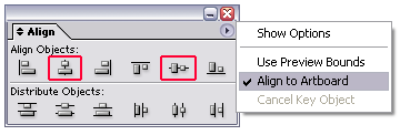 Sejajarkan persegi panjang kami ke pusat artboard kami menggunakan palet Align (Shift + F7). Pastikan Anda memilih Align untuk Artboard dalam rangka untuk membuatnya bekerja.